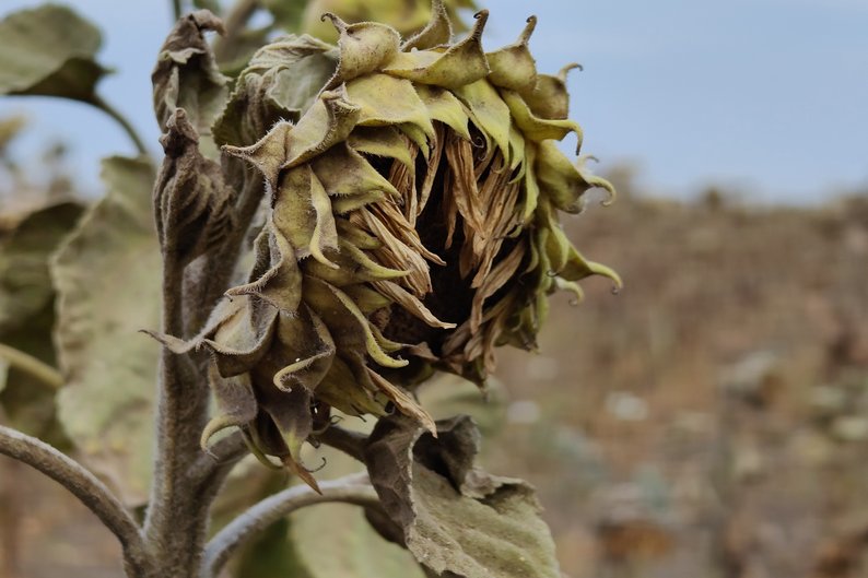 Засохлий соняшник, серпень 2025 року, Миколаївщина. Суспільне Миколаїв/Федір Бондар