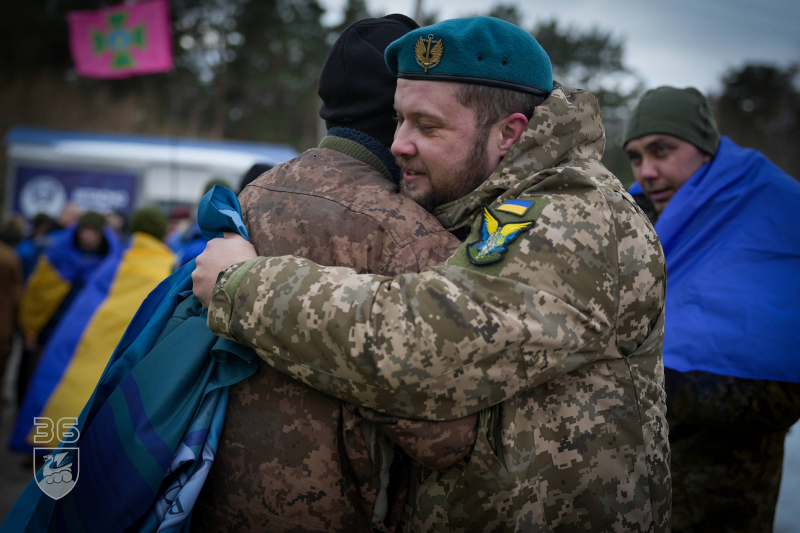 На рідній землі звільнених оборонців зустрічали сім'ї та побратими. Також на воїнів чекали представники цивільно-військового співробітництва 36-ї бригади та 30-го Корпусу морської піхоти.