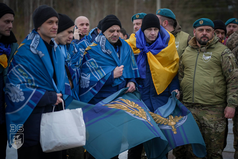 Миколаївські морпіхи після обміну полоненими. 36 ОБрМП Під час обміну з російського полону 5 березня в Україну повернулися 200 громадян. Серед них — військовослужбовці миколаївської бригади морської піхоти.