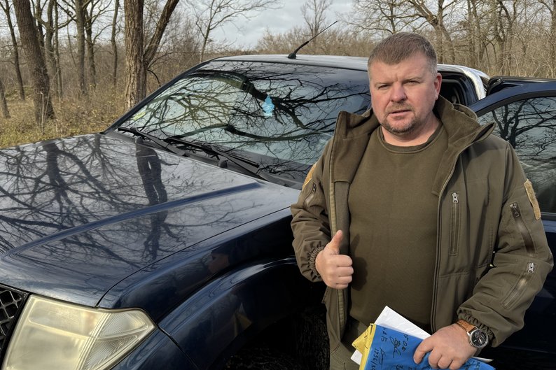 Волонтер Юрій Бешевець біля автівки. Суспільне Миколаїв/Олександр Гордієнко