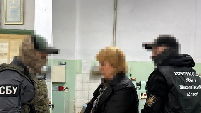 Підозрювана під час затримання. СБУ СБУ затримала працівників оборонного заводу на Миколаївщині, яких підозрюють у співпраці з воєнною розвідкою РФ. За даними слідства, вони передавали інформацію про об'єкти та охорону підприємства.