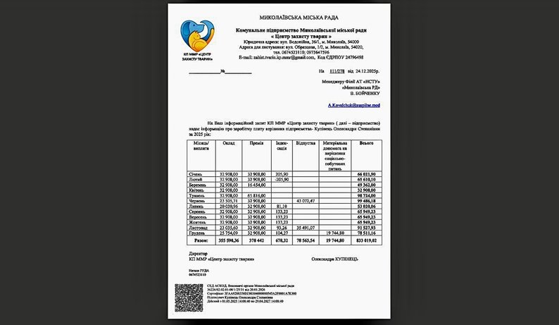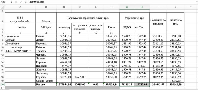 Заробітна плата директора КЖЕП ММР "Зоря" у 2025 році: що зазначено в довідці
