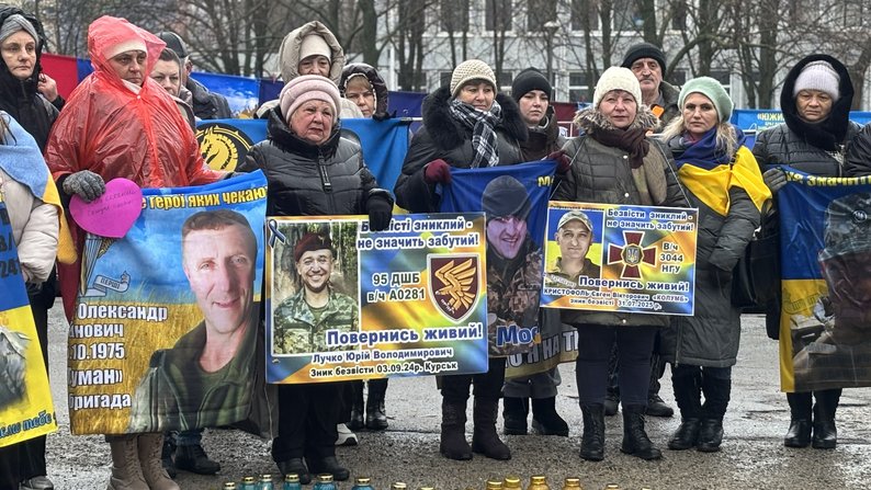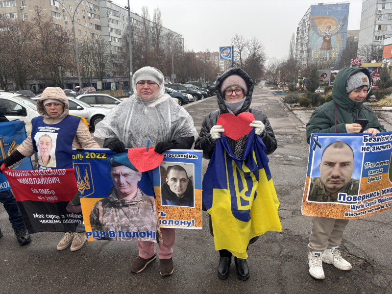 Учасниця акції Вікторія додала, що вона разом із учасниками спільноти "Чекаємо" виходить на мітинги за будь-якої погоди, аби нагадати про рідних, які досі у полоні або зникли безвісти.