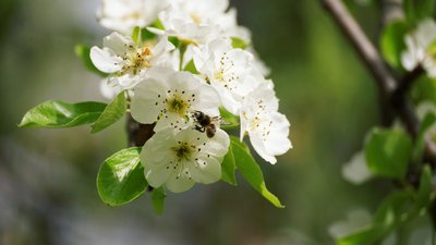 Бджола на квітці. Суспільне Миколаїв/Олександр Гордієнко Опадів на Миколаївщині протягом 25 квітня синоптики не прогнозують. Температура повітря вдень становитиме до +20°С.