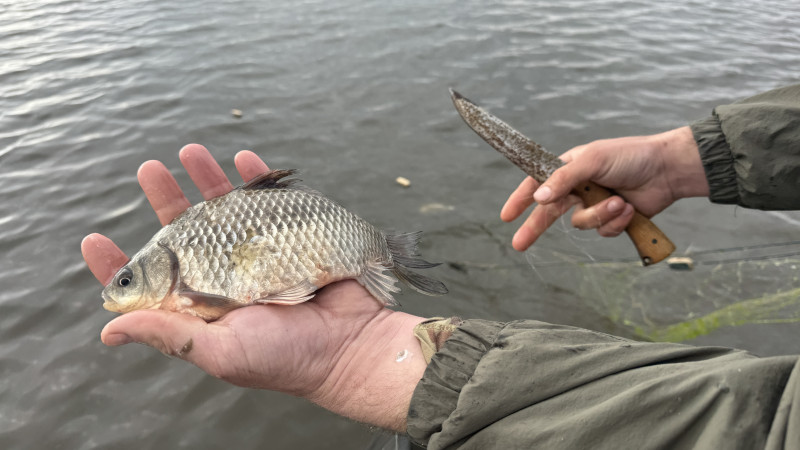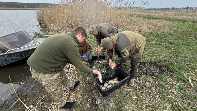 "Будуть складені відповідні матеріали та акт безгоспного майна і оббірковано знаряддя лову. Тут десь два десятки карася сріблястого, які будуть відпущені у живому стані у водойму", — розповів інспектор Дмитро Верлатий.