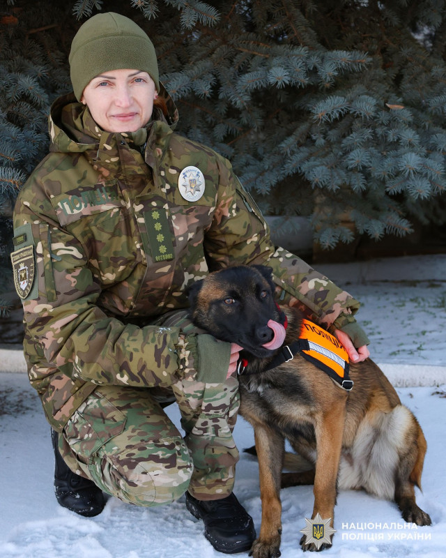 Собака Ія та кінологиня Нацполіція