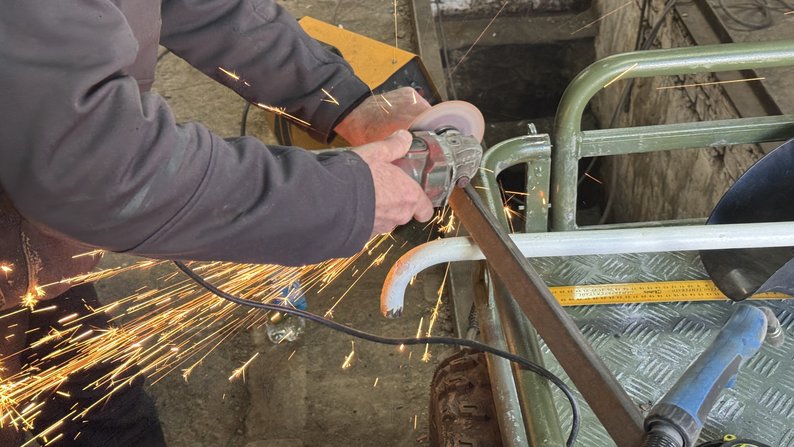 "Для доставки провізії, боєкомплекту та всього необхідного на бойових позиціях ми його зараз модернізуємо. Ось — розширяємо, підіймаємо борти, щоб більше можна було вмістити. Також поставимо додаткову рамку: ось тут вона буде стояти — для кращого огляду відео і, плюс, керування", — говорить чоловік.