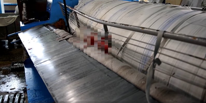 Обертовий вал прасувального станка, в якому жінці затисло руку. ГУ ДСНС у Миколаївській області