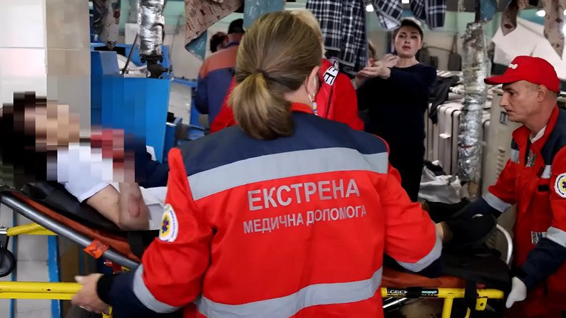 Лікарі транспортують травмовану жінку на ношах. ГУ ДСНС у Миколаївській області У Миколаєві 9 жовтня жінці затисло руку в обертовому валіДеталь, що обертається навколо своєї осі, призначена для передачі руху зв'язаним з нею частинам машини чи механізму. прасувального станка. Травмовану госпіталізували.