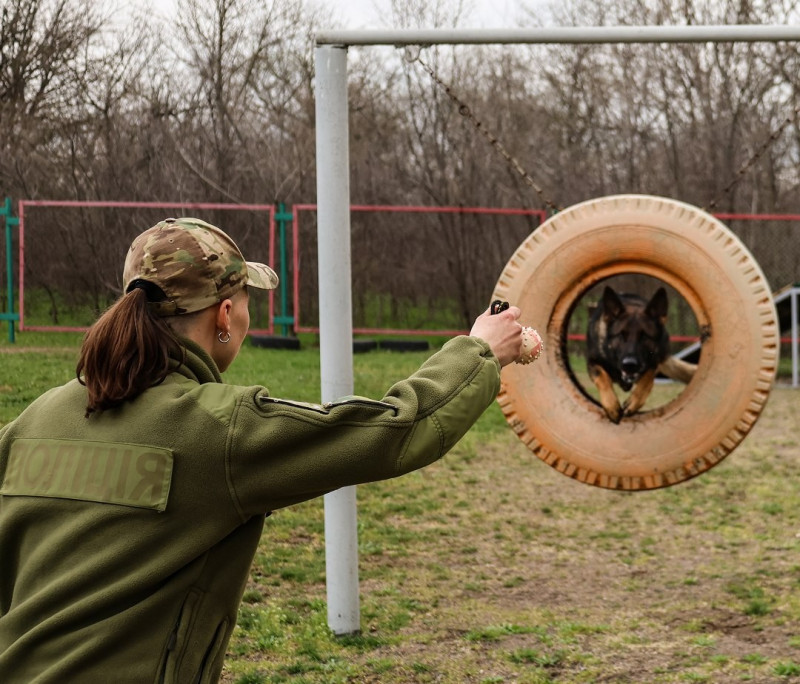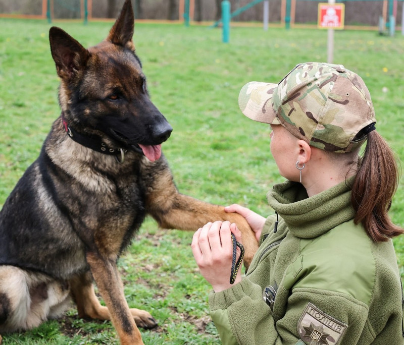 “Маємо постійні тренування і поступово йдемо до нашої спільної мети — отримати сертифікат. Лише після цього чотирилапий буде допомагати поліцейським розшукувати злочинців за запаховим слідом”, — розповідає кінологиня Ксені