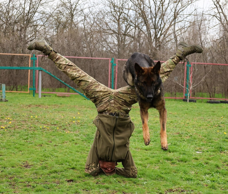 Кінологиня Ксенія та пес Еджер. Головне управління Нацполіції в Миколаївській області У Миколаєві службовий пес Еджер проходить підготовку разом із поліцейською-кінологинею Ксенією Калініною. Дівчина вчить собаку виконувати команди німецькою та готує його до заліків.