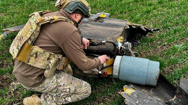 Вибухотехнік поруч із російським дроном. Головне управління Нацполіції Миколаївщини У Баштанському районі Миколаївської області фахівці знешкодили російський ударний безпілотник. Дрон впав посеред поля, втім його бойова частина, що містила десятки кілограмів вибухівки, не здетонувала.