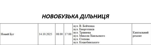 Графік відключення світла по адресах 14 жовтня, Новобузька дільниця АТ “Миколаївобленерго”