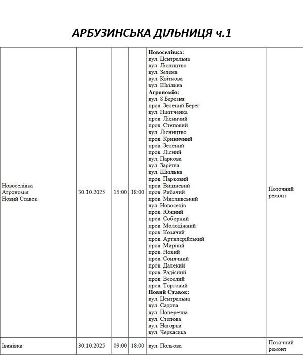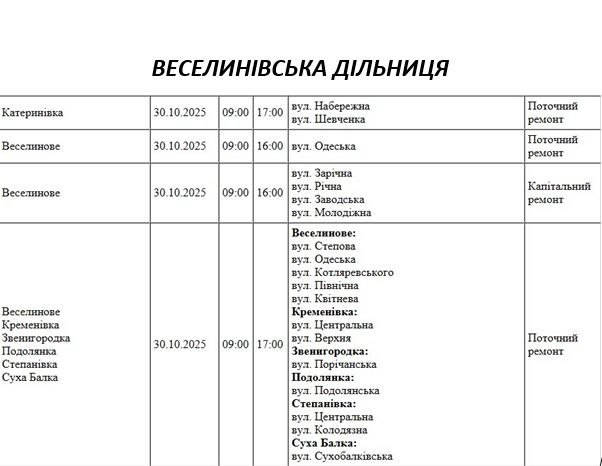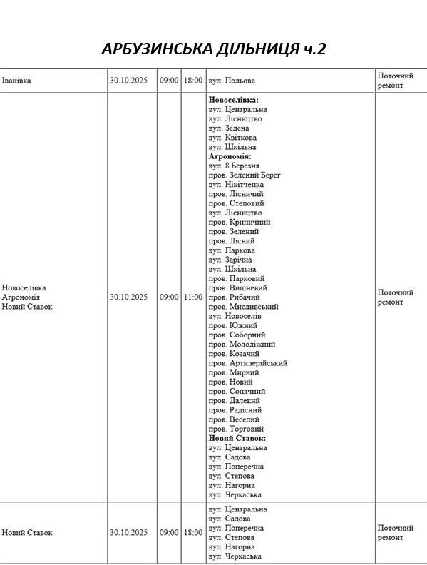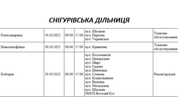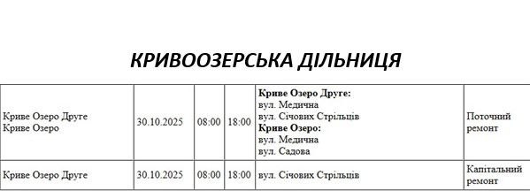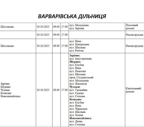 - Область поділили на десять черг, у кожну з яких входять різні дільниці та населені пункти.