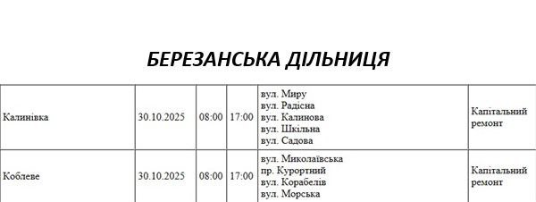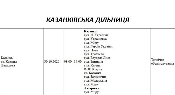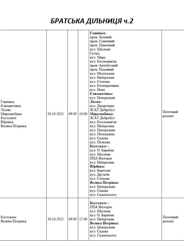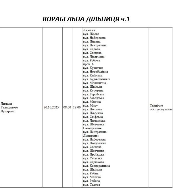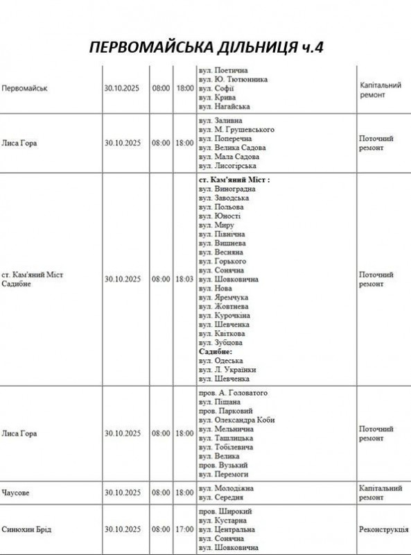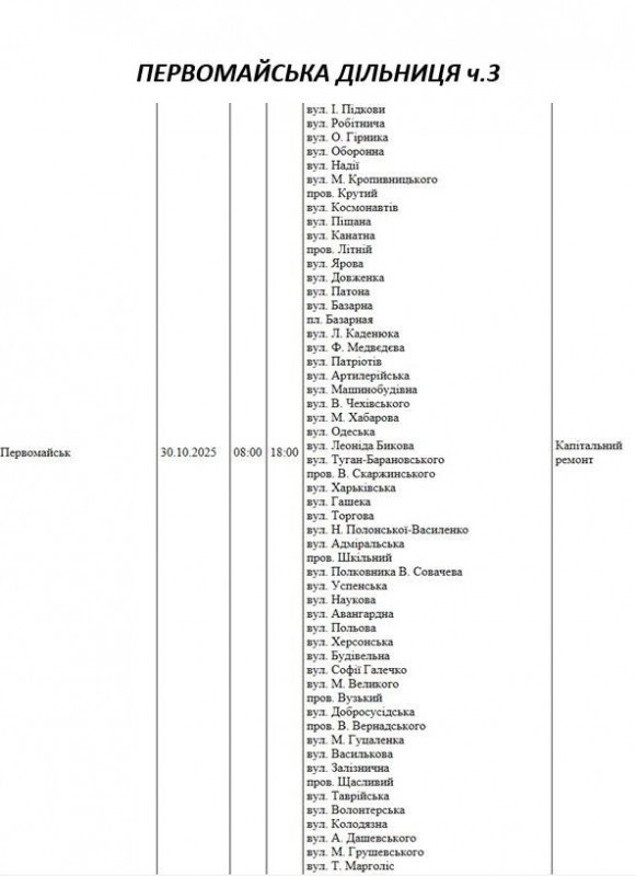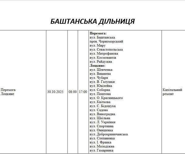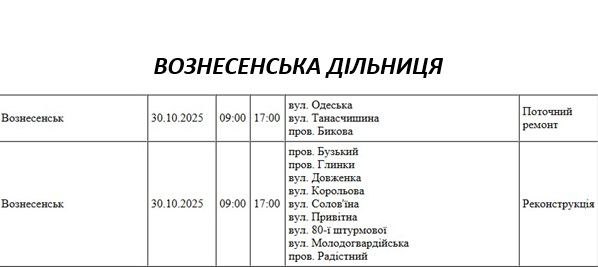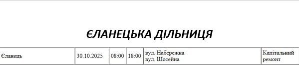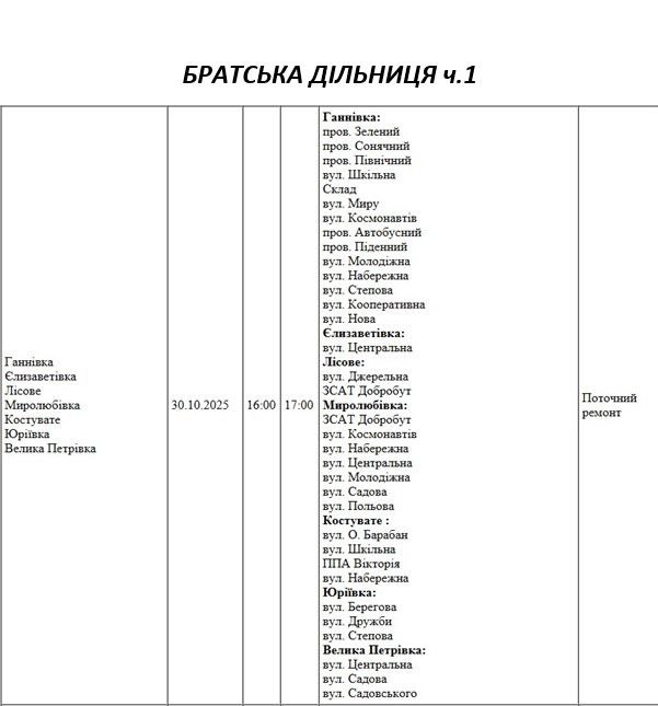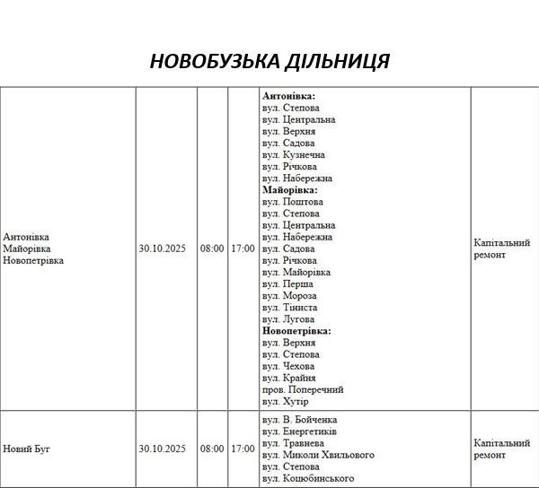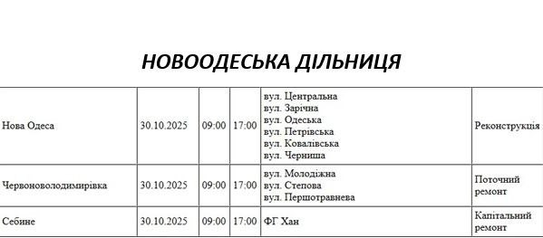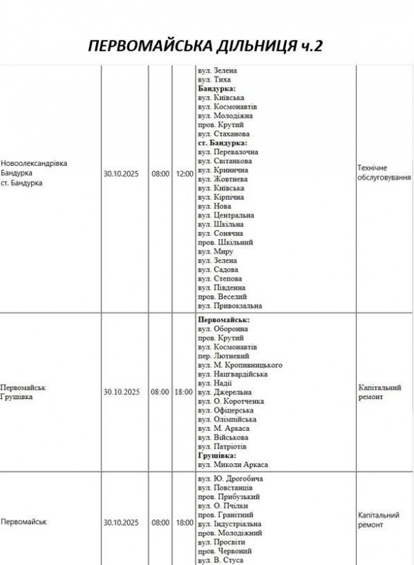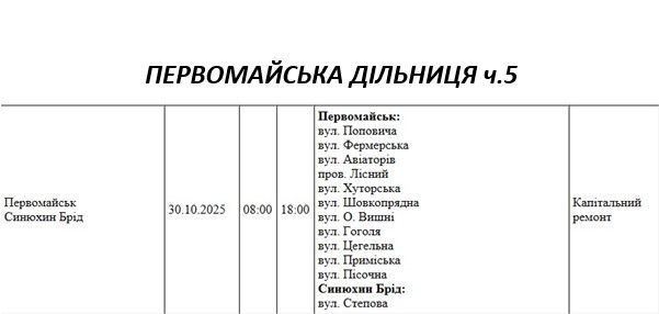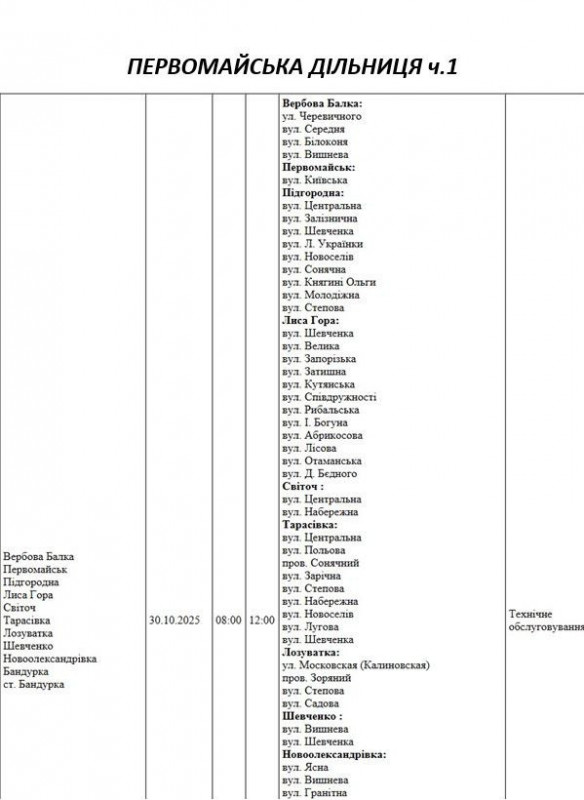 Графік відключення світла на Миколаївщині АТ “Миколаївобленерго” Первомайська дільниця