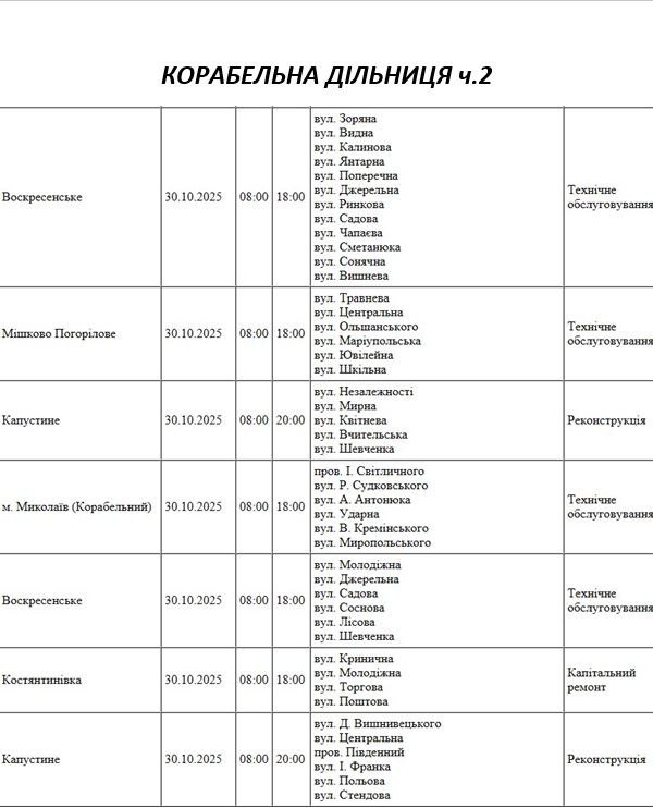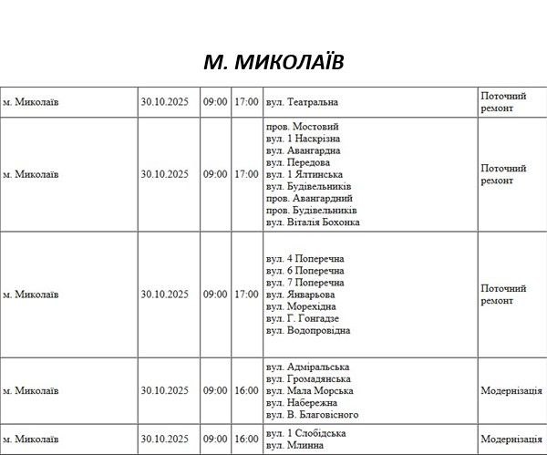 Графік відключення світла на Миколаївщині АТ “Миколаївобленерго”