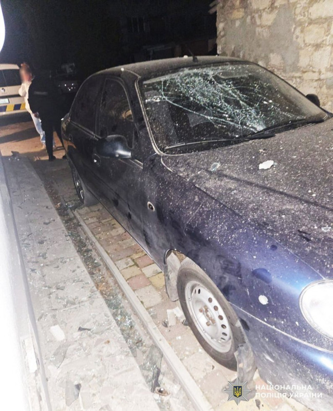 Пошкоджена автівка внаслідок вибуху гранати. Головне управління Нацполіції Миколаївщини