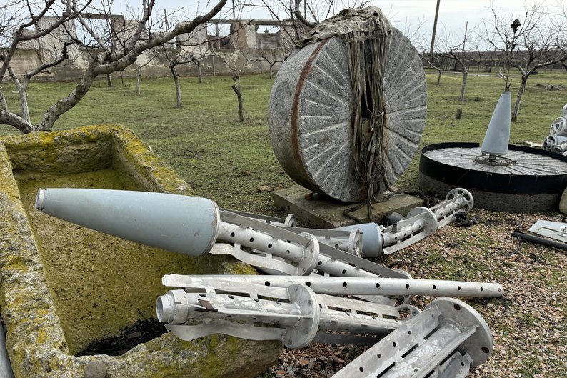 Тепер поруч із ними — інші експонати, залишки російських боєприпасів, які падають поблизу господарства.
