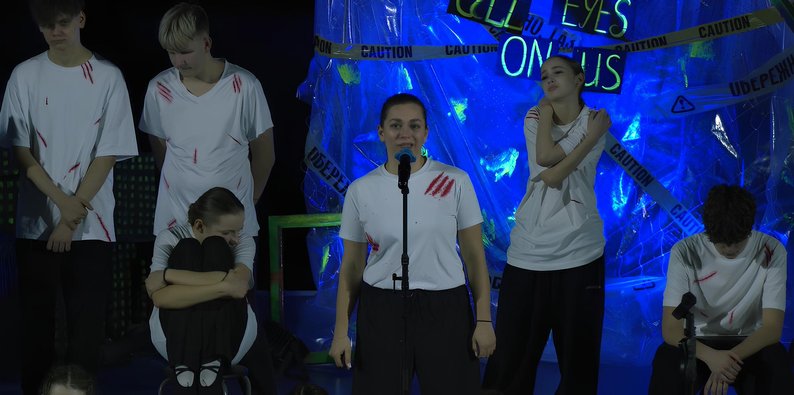 Момент з вистави “Всі очі на нас”. Суспільне Миколаїв/Богдана Будулуца