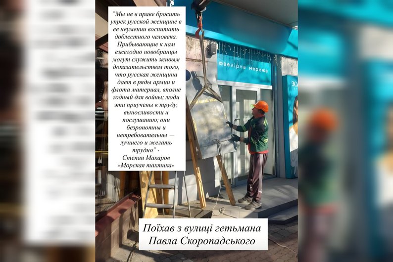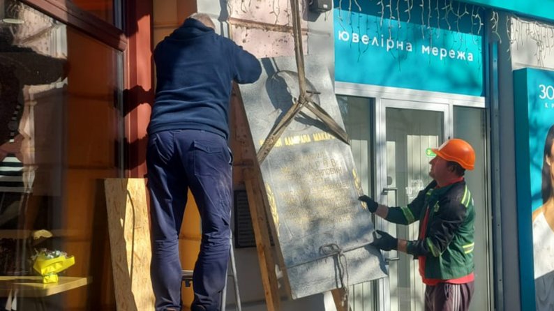 Демонтаж дошки С.Макарову. Інстаграм-сторінка Євгена Полякова