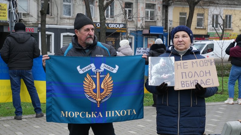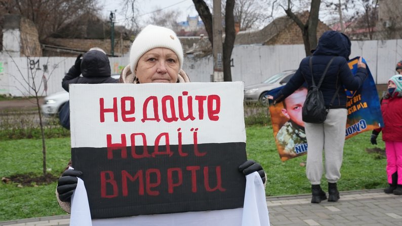 Люди на акції-нагадуванні про полонених та зниклих безвісти у Миколаєві. Суспільне Миколаїв/Аліна Ковальчук У Миколаєві 14 грудня люди вкотре вийшли на акцію-нагадування про зниклих безвісти та полонених. Родини та друзі вірять у скоріше повернення своїх рідних додому та щотижня нагадують суспільству про тих, хто не вдома.
