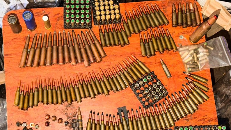 Під час обшуку поліцейські виявили та вилучили 340 набоїв, п’ять одиниць ручної зброї, два підривачі, корпуси двох гранат, тротилову шашку та різноманітні піротехнічні засоби.