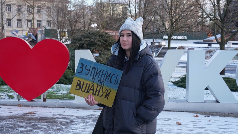 "Кожну неділю миколаївці виходять на загальну національну хвилину мовчання о 9:00. Ми згадуємо тих, хто постраждав від збройної агресії Росії, всіх цивільних, всіх військових. В принципі, я вважаю, що це потрібно робити кожен день, а не тільки в неділю о 9:00", — каже жінка.