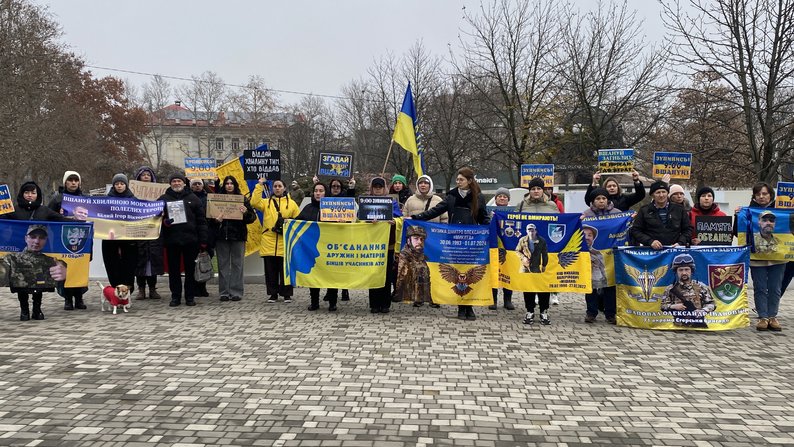 У акції взяли участь 45 людей, повідомила керівниця ВП ГО "Об'єднання матерів і дружин захисників України" в Миколаївській області Лілія Першина.