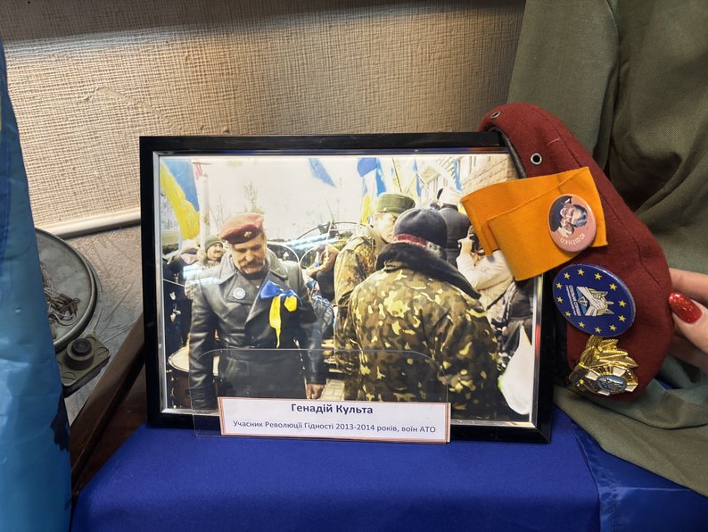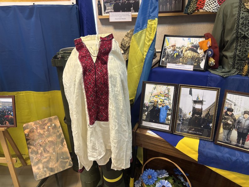 Крім фото, на виставці представлені особисті речі активістів. Зокрема, Геннадій Культа передав до музею свою українську вишиванку, в якій він був на Майдані.