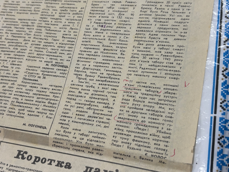 "Вона звернулася до музею з проханням, щоб зробити відповідні таблички з написами, де вона може продемонструвати, що вона є в'язнем того концтабору. Ми їй зробили відповідні таблички, але вона не змогла за станом здоров'я поїхати у Німеччину, на жаль. Але вона підтримувала зв'язок з тими людьми, які були теж в концтаборі. Я так зрозуміла, що це з інших куточків України — оце вона мені особисто розказувала", — розповіла вона.