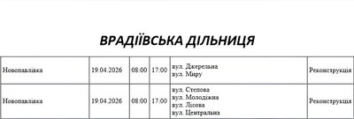 У селі на Миколаївщині 19 квітня вимикатимуть світло: адреси 18.04.2026 Графік відключення світла по адресах 19 квітня, Врадіївська дільниця. АТ “Миколаївобленерго” Джерело