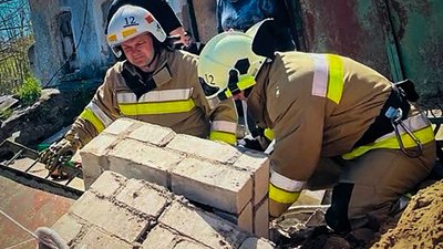 "Черговий караул, який прибув на місце, разом із місцевими мешканцями, використовуючи мотузку, підняли бетонну плиту та визволили постраждалого".