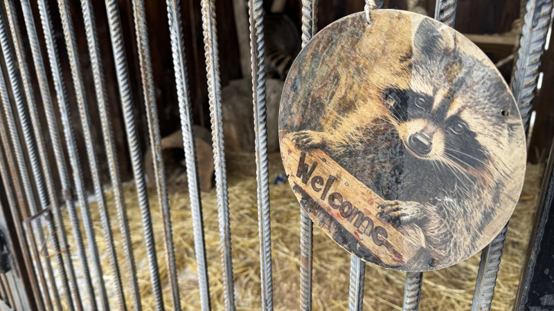 Зараз єноту пів року. У центрі реабілітації для Рокі облаштували окремий вольєр, який дозволяє тварині поводитися відповідно до її природних потреб. Через холодну погоду єнота пускають туди лише на кілька годин.