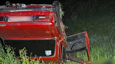 Перекинуте авто внаслідок ДТП. ГУ Нацполіції в Миколаївській області На Миколаївщині вночі 26 квітня перекинулася машина "ВАЗ". Внаслідок цього загинув чоловік та ще троє людей травмовані.