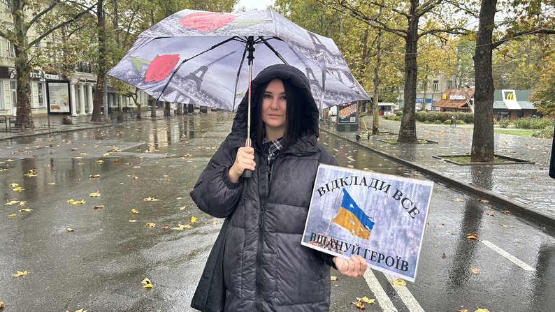 Дівчина розповідає, щодня о 9:00 зупиняється та вшановує пам’ять загиблих українських військовослужбовців та цивільних, а щонеділі долучається до акції у центрі міста.