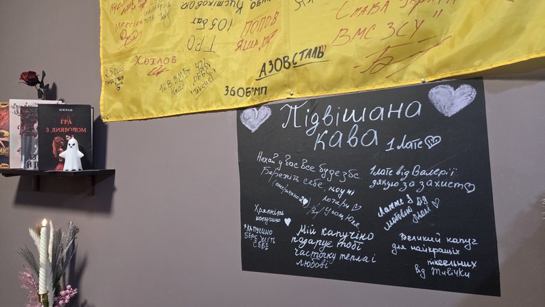 "Одна з них — підвішена кава. Тобто якась людина приходить і замовляє для когось її. Вона записує у нас там на дощечках. Пише побажання й потім військовий заходить. Ми йому кажемо: "Є підвішена кава, можете взяти безоплатно, її вже оплатили". Але часто вони її не беруть прям так. Ну, прям цілком безплатно. Вони щось дають хоча б символічно", — каже колишній військовополонений.